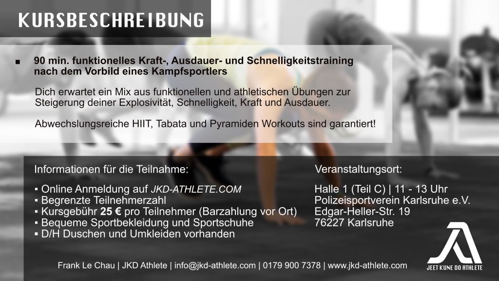 Mein zweiter Bodyweight Fit Workshop im neuen Jahr findet am Sonntag, 16.02.2020 statt und steht unter dem Motto „The Warrior Athlete“. Es erwartet dich ein Workshop von insgesamt 90 min. nach dem Vorbild eines „Kriegers“ bzw. Kampfsportlers. Ein Mix aus funktionellen und athletischen Übungen zur Steigerung deiner Explosivkraft, Schnelligkeit, Kraft und Ausdauer. Diverse HIIT, Tabata und Pyramiden Workouts sind garantiert.