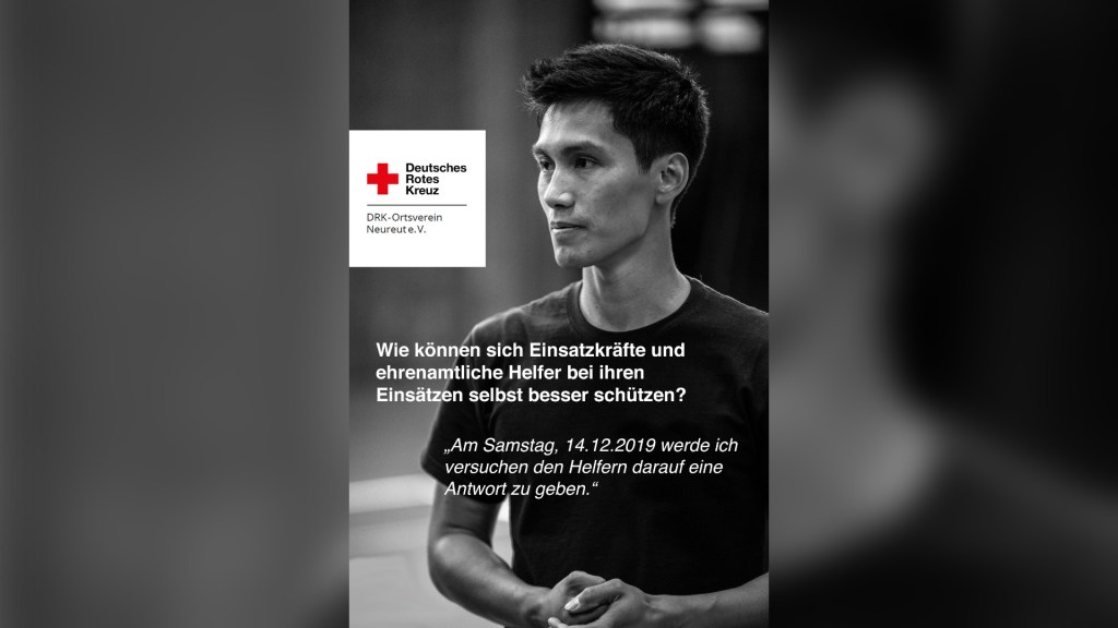 Am Samstag, 14.12.2019 bin ich beim Ortsverein des Deutschen Roten Kreuz in Neureut zu Gast. Bei diesem Seminar geht es um die Sicherheit von Einsatzkräften, Sanitätern und ehrenamtlichen Helfern bei ihren Einsätzen.